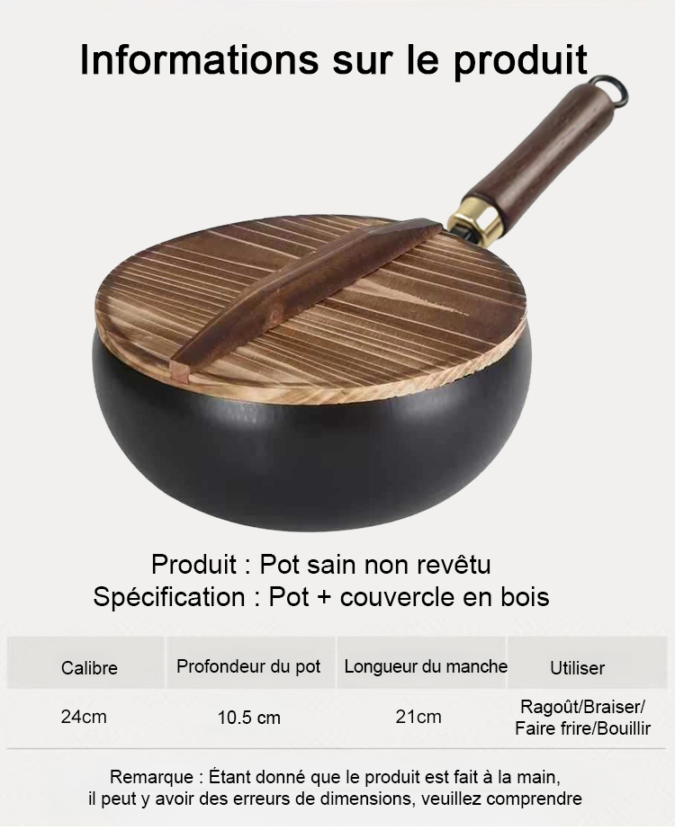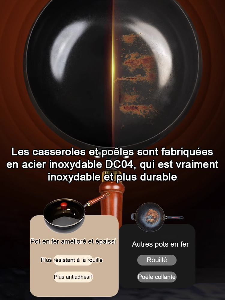 Poêle saine sans revêtement : poêle antiadhésive en fer pur.