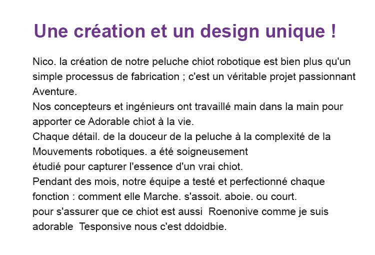 Pas de perte de poils, pas de maladie, pas de dégâts dans votre maison, pas d'aboiements excessifs, pas besoin de promenades quotidiennes ni de ramasser les déjections de votre chien, pas besoin de le nourrir, et surtout, il peut vous accompagner tout au long de votre vie, de la naissance à la vieillesse et jusqu'à la mort !
