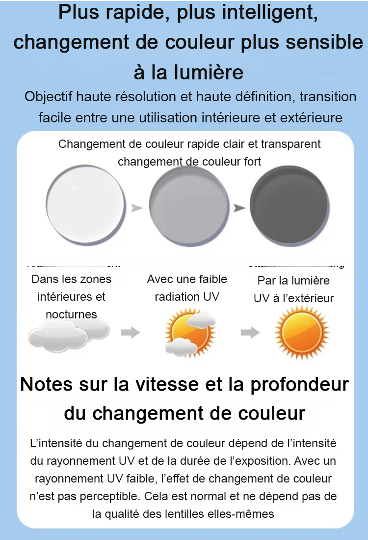 ✨ Sans ordonnance, adaptation automatique à votre vue. Vision nette de près comme de loin, transforment en lunettes de soleil à la lumière.