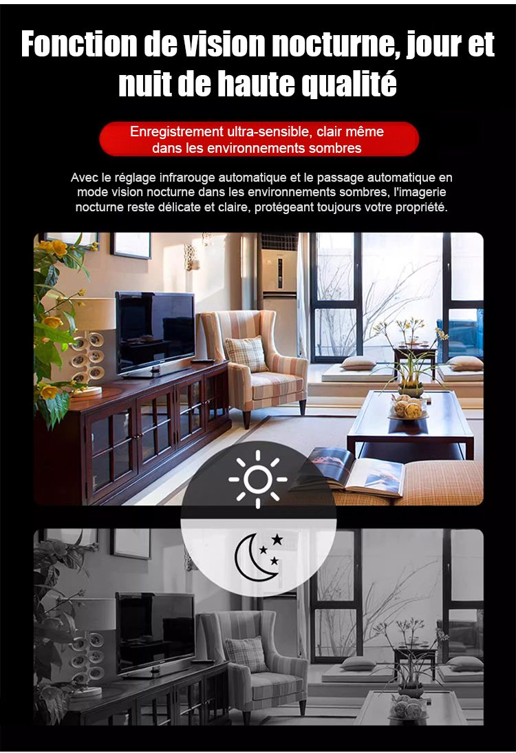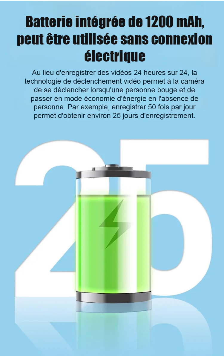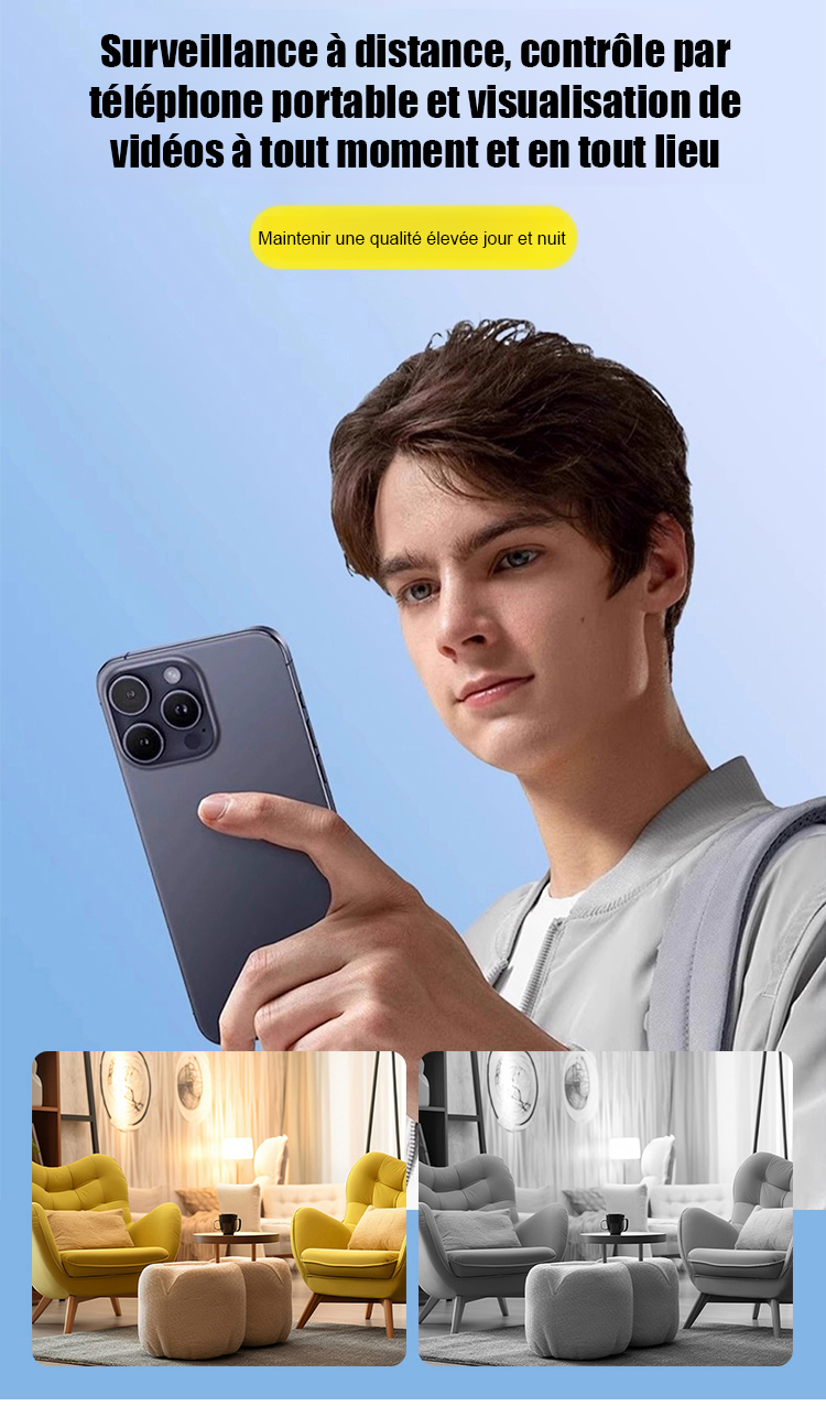Cette mini caméra de grade militaire redéfinit la surveillance domestique. Contrairement aux caméras classiques, elle n'a besoin ni de WiFi, ni de branchement électrique. Grâce à son capteur de mouvement intelligent et sa batterie lithium haute capacité, elle reste active jusqu'à 6 mois en une seule charge.