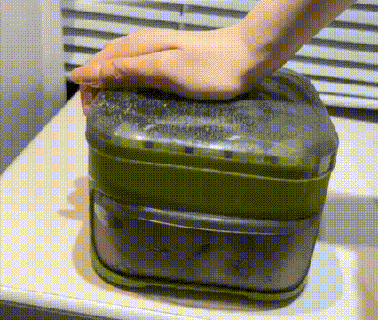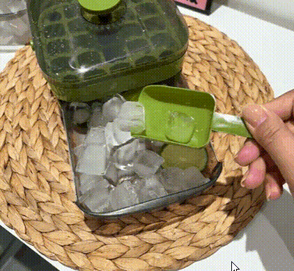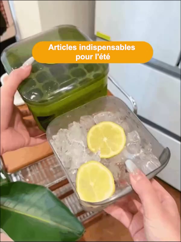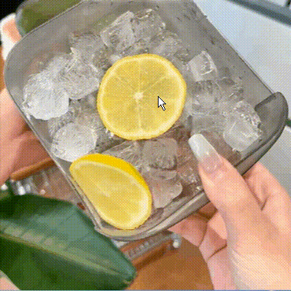 Une simple pression d'une main sur le dessus suffit. Tous les glaçons tombent en une seconde et glissent en trois secondes dans le tiroir de stockage stérile. Son couvercle hautement scellé bloque définitivement les odeurs de viande crue ou de fromage.